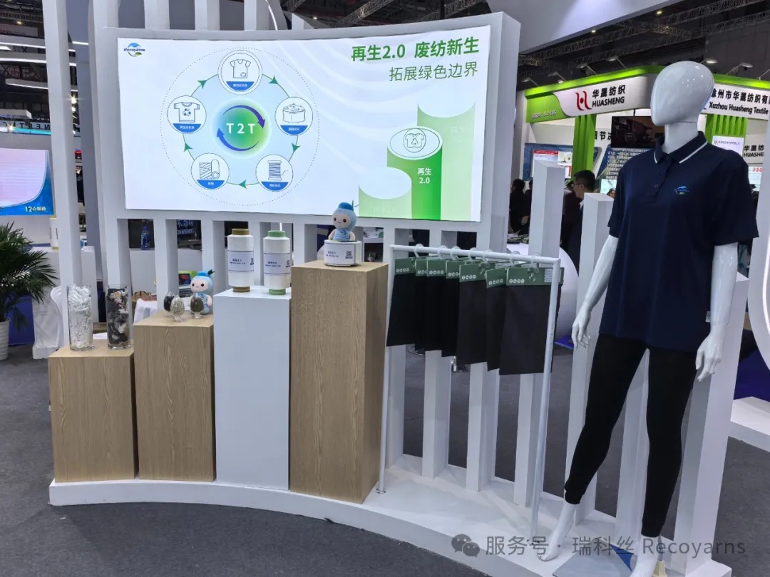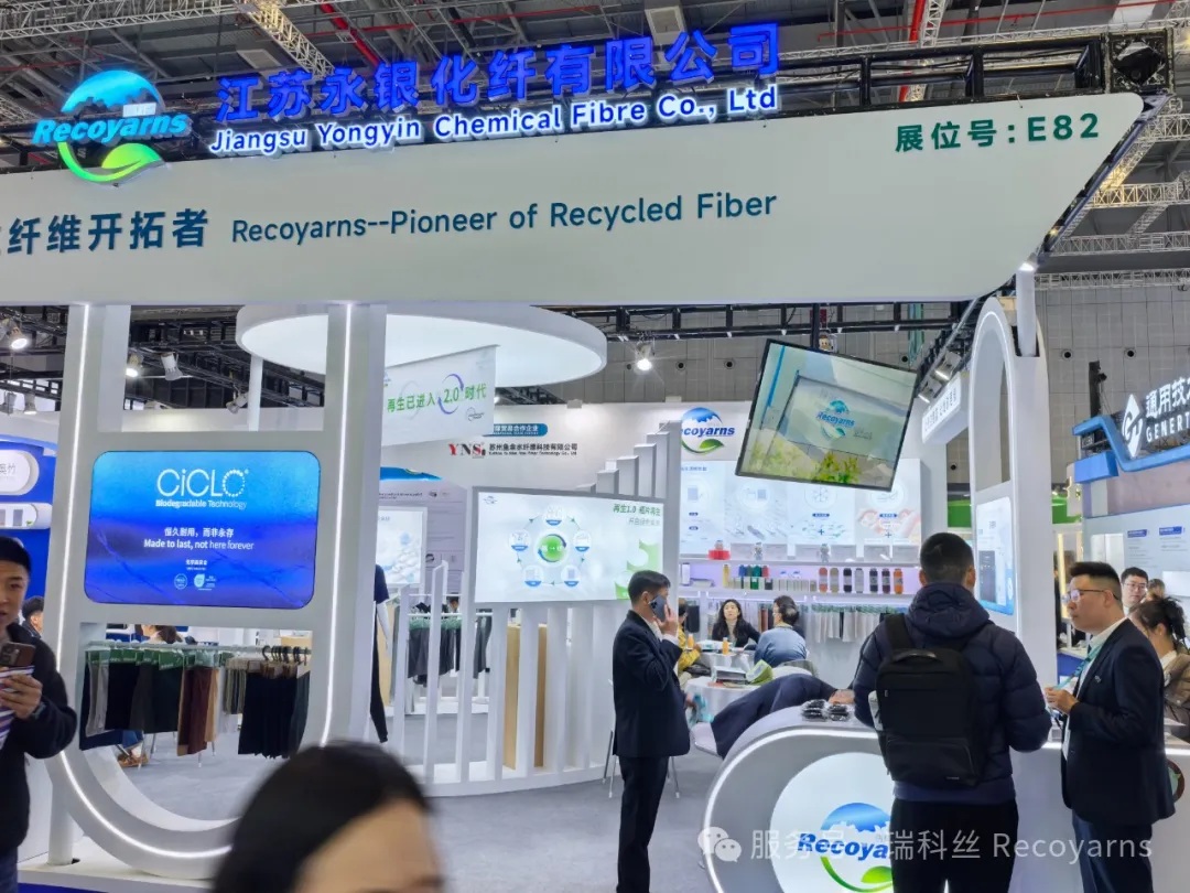 江蘇永銀化纖有限公司的再生2.0產品 ——T2T 廢紡新生紗成為展會一大亮點。這款紗線在原料使用上實現了重大突破,不僅采用了消費后回收的塑料瓶,還創新性地融入了部分廢棄紡織品。以往,多數再生紗線僅依賴塑料瓶回收,而 T2T 廢紡新生紗將原料范圍拓展至廢棄紡織品,實現了從單一塑料瓶回收向多元廢棄物利用的轉變。這一創新舉措,極大地擴大了廢舊資源的利用范圍,為紡織行業的可持續發展開辟了新路徑。通過先進的技術手段,將廢棄紡織品中的纖維重新利用,不僅減少了對原生資源的依賴,還降低了廢棄物對環境的影響,真正做到了變廢為寶。