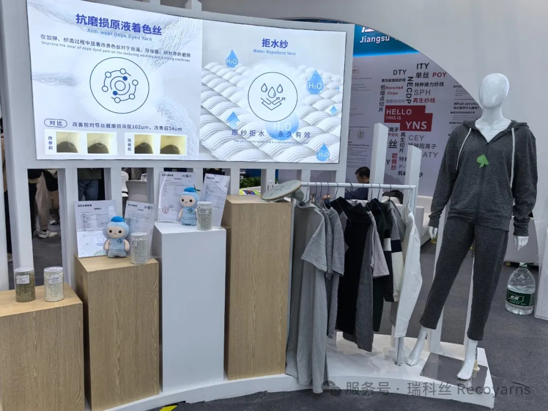 江蘇永銀化纖有限公司在研發方面持續發力,推出的拒水紗、再生阻燃產品、再生高收縮產品在展會上也吸引了大量觀眾。拒水紗通過特殊的表面處理技術,使紗線具備優異的拒水性能,水滴在其表面無法滲透,可廣泛應用于戶外服裝、雨具等產品。再生阻燃產品在保證阻燃性能的同時,采用再生原料,實現了環保與安全的雙重目標,適用于對防火要求較高的場所,如公共建筑內飾、消防服等。再生高收縮產品則具有獨特的收縮性能,能為織物帶來特殊的紋理和手感,為設計師提供了更多創意空間,在時尚服裝領域具有很大的應用潛力。