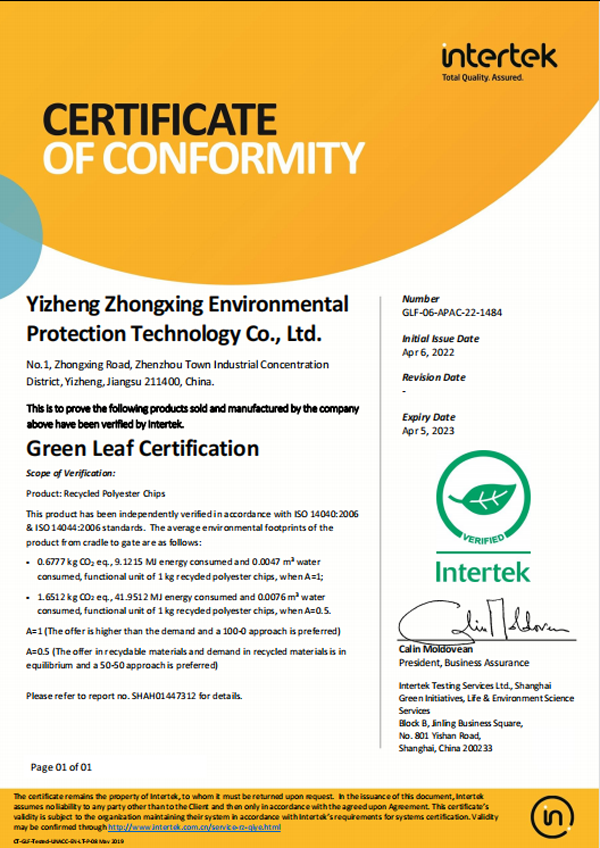 江蘇仲元實業集團有限公司下屬江蘇永銀化纖有限公司、儀征市仲興環??萍加邢薰竞椭僭獓H貿易(上海)有限公司,是專注于再生聚酯切片和再生滌綸紗線的資源循環再利用的大型生產企業,現有再生聚酯切片產能20萬噸/年,再生滌綸紗線產能8萬噸/年,公司是國家高新技術企業,并且是中國長絲織造協會推薦供應商。公司擁有自營進出口經營權。仲元集團注冊品牌Recoyarns ®瑞科絲,在其再生聚酯切片、再生滌綸纖維及其制品中添加獨有的 Reco-in 追蹤識別技術,可定性、定量追蹤識別下游產品中是否含有Recoyarns ®再生成分,保證了產品的安全性、唯一性和可追溯性。
