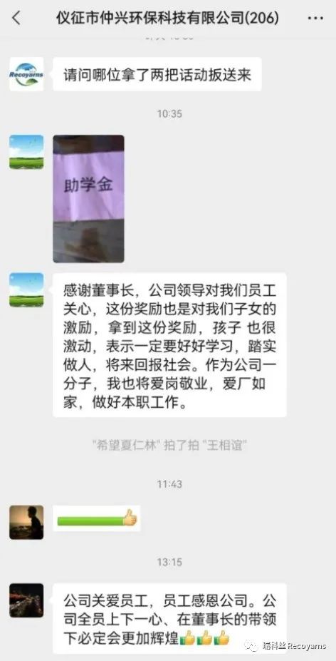 仲元集團是一家專注于再生聚酯切片和再生滌綸長絲的大型生產及貿易企業,擁有高端再生化纖注冊品牌——Recoyarns瑞科絲。其下屬企業包括江蘇永銀化纖有限公司、儀征市仲興環保科技有限公司以及仲元國際貿易(上海)有限公司。開展“金秋助學”活動,是為了充分展現了公司“扶貧扶智、重教助學”的企業文化。